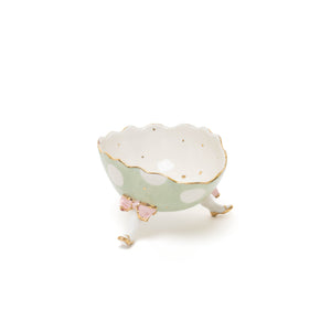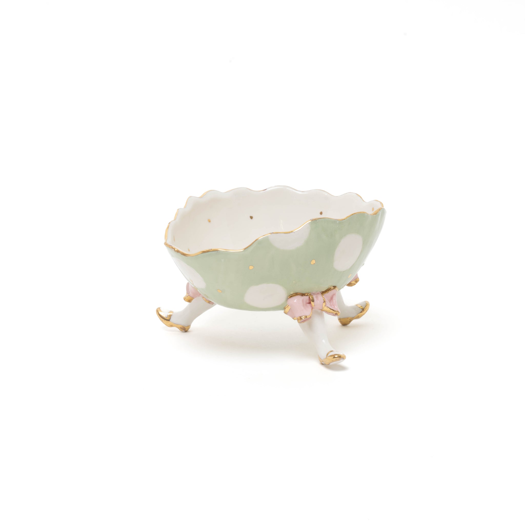 Schale mit 3 Füßen aus Porzellan perfekt für Kekse, Pralinen oder Beeren, Goldrand mit Punkten, 100 % handgefertigt und handbemalt, in diversen Farben erhältlich.