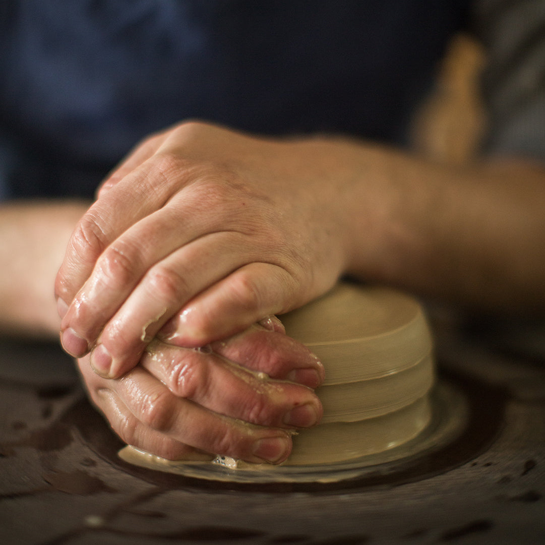 Nur mit Wasser wird er aufgeschlämmt und grob gesiebt, alle natürlichen Begleitmineralien bleiben erhalten. Die Schlämme setzen langsam ab, bis sie über Wochen in Ziegelmatrizen zur knetbaren Masse gedeihen. Nach jahrhundertealter Tradition wird der Ton kühl und feucht für mindestens ein Jahr lang gelagert.  Sorgfältig mit der Hand geknetet, formt Josef Wieser den Ton auf der Töpferscheibe. Jedes Gefäß wird so einzeln und individuell gestaltet, danach langsam getrocknet und bei 900° C rohgebrannt. Für die Glasuren werden ausschließlich Gesteinsmehle und Rohstoffe wie Feldspat, Quarz, Kreide und Ton verwendet. Im zweiten Brand schmilzt dieser Überzug bei einer Temperatur von 1250° C.