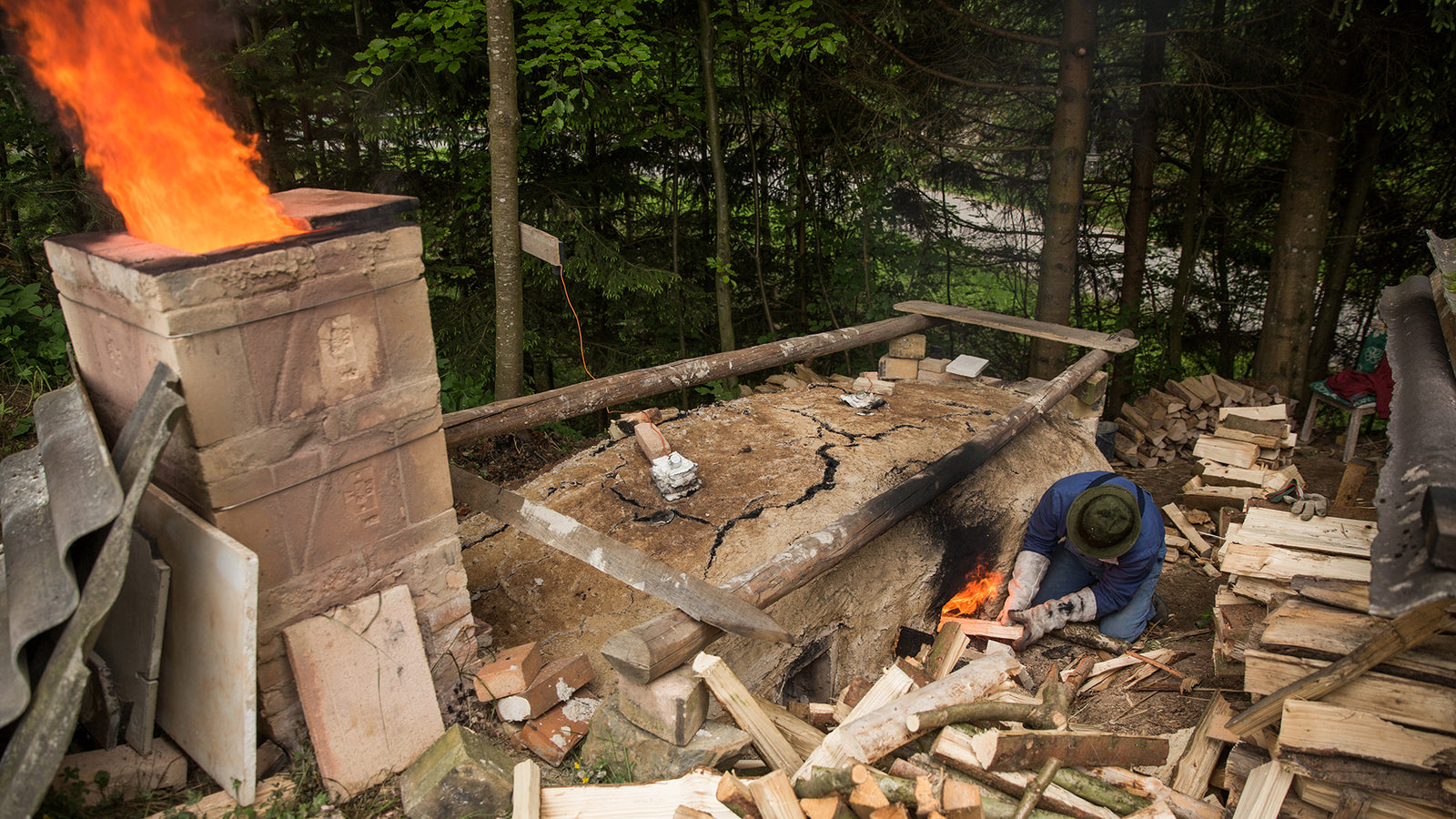 Nach traditioneller Technik brennt Josef Wieser auch mit Holz, unter anderem in einem Anagama Ofen. Feuerstelle und Werkstücke sind dabei im selben Raum, durch die extrem hohe Temperatur – bis 1300° C – reagiert die Asche mit dem Ton und es entsteht eine natürliche Glasur.