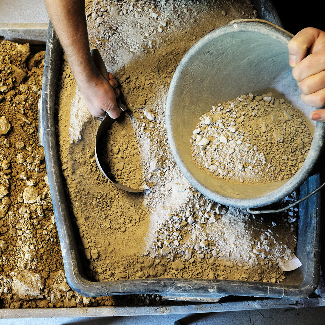 Auswahl der Tonsorten. So wie der Ton in der Grube gestochen wird,