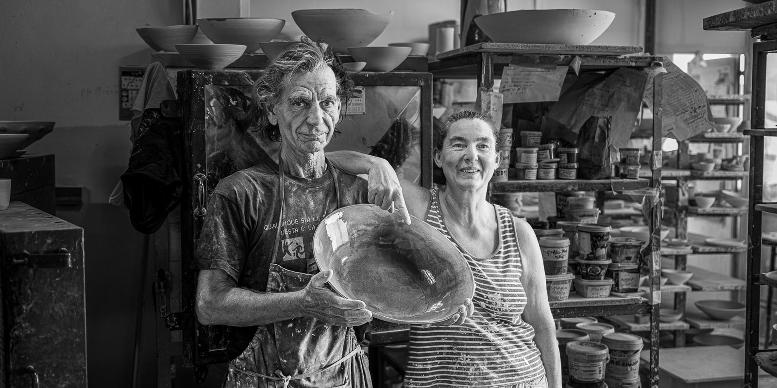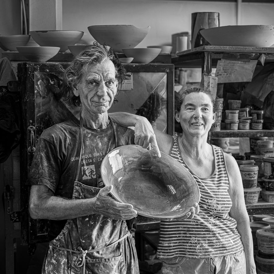 Studio Potomak wurde 1982 von Donatella Parotto und Mauro Bonvecchio gegründet. Ihr Name stammt vom gleichnamigen Werk Jean Cocteau‘s. 15 Jahre lang arbeiteten sie intensiv mit Raku-Technik und etablierten sich international durch die Originalität und hohe Qualität ihrer Produkte. Ab 1998 fanden Donatella und Mauro in handgefertigtem Porzellan ihre besondere Faszination. Diese Technik, die im Mittelmeerraum nicht sehr verbreitet war, inspirierte von nun an die Kreativität der beiden Künstler.